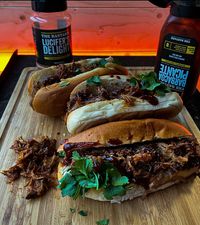 Serveer je pulled pork op zachte broodjes met frisse coleslaw. Verwarm het kort terug op de barbecue als je het warm wilt serveren.