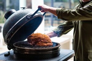 Voor pulled pork op de kamado gebruik je het best procureur. Dit deel van het varken is mooi dooraderd met vet, waardoor het vlees tijdens het garen mals blijft. Een alternatief is Boston butt. Dat stuk bevat meer bot en vet en geeft daardoor nog meer smaak. Kies bij voorkeur voor kwaliteitsvlees, zoals BBQ vlees dat speciaal is geselecteerd voor de barbecue.